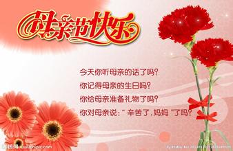 人不孝,不可交;人盡孝,品德高;愛(ài)母心,不可拋;報(bào)母恩,要勤勞。母親節(jié),要問(wèn)好;康乃馨,真情表。你與我,多年交;母親在,樂(lè)陶陶!