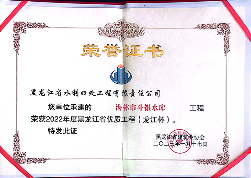 黑龍江省優(yōu)質(zhì)工程(龍江杯)獲獎證書