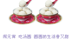 元宵送湯圓,祝福圓又圓。滿碗都是福,好運(yùn)不勝數(shù)。一口一個甜,快樂笑開顏。再嘗香滿嘴,成功緊相隨。連湯一起喝,幸福日子多。