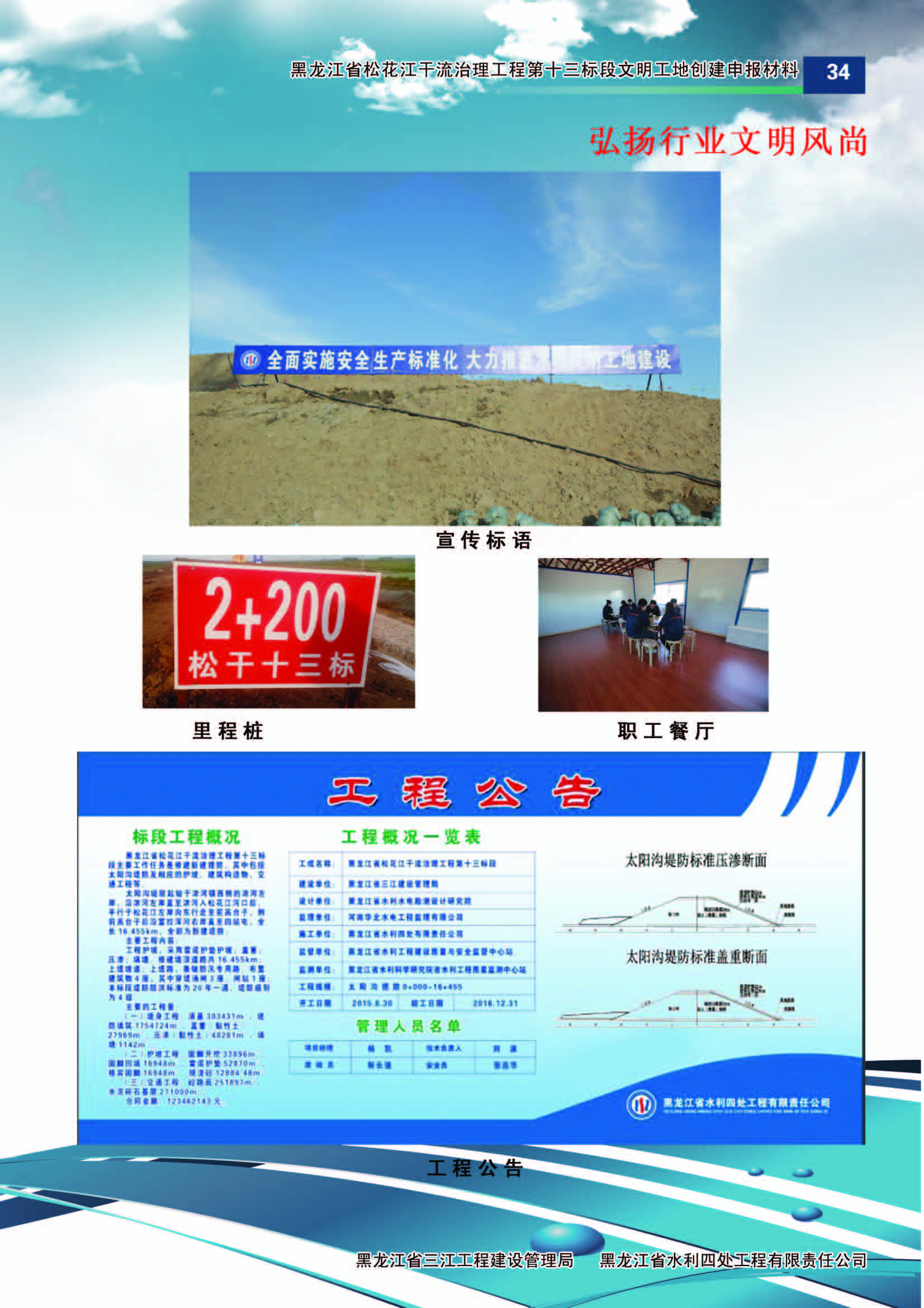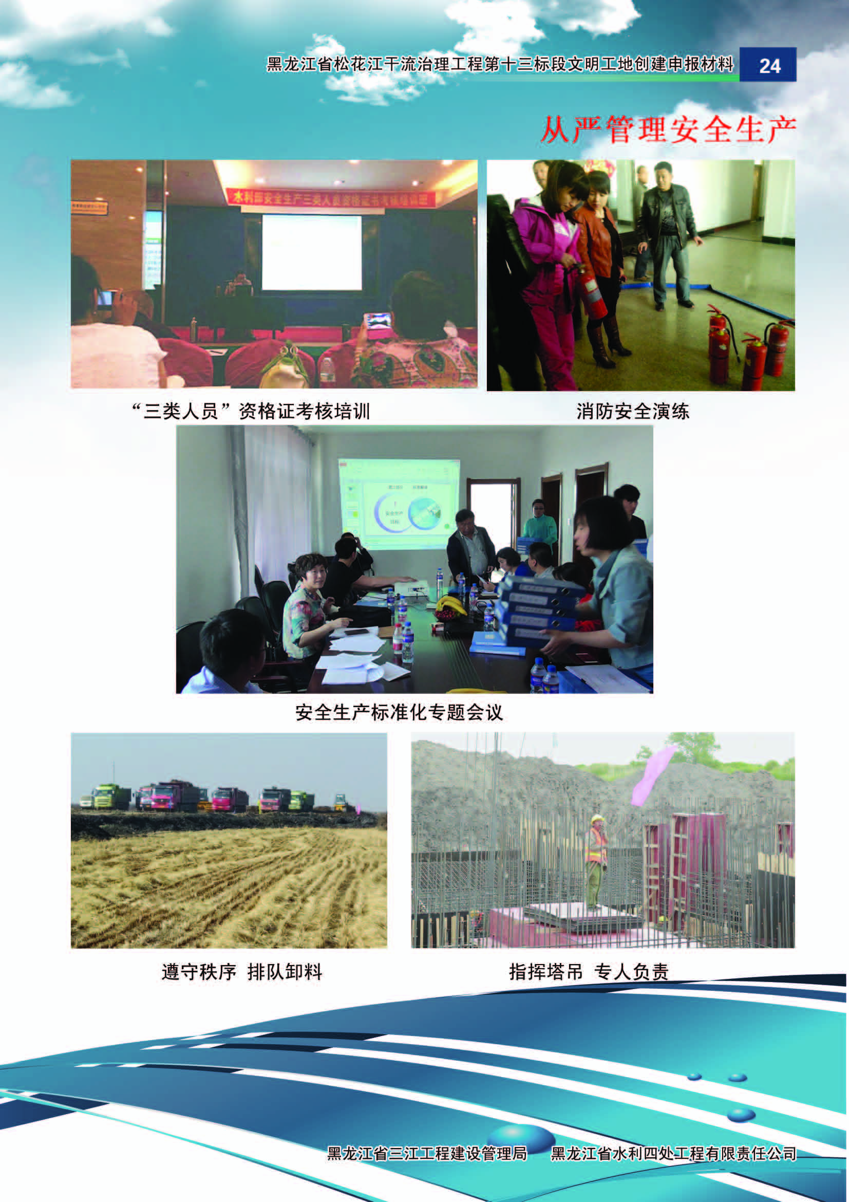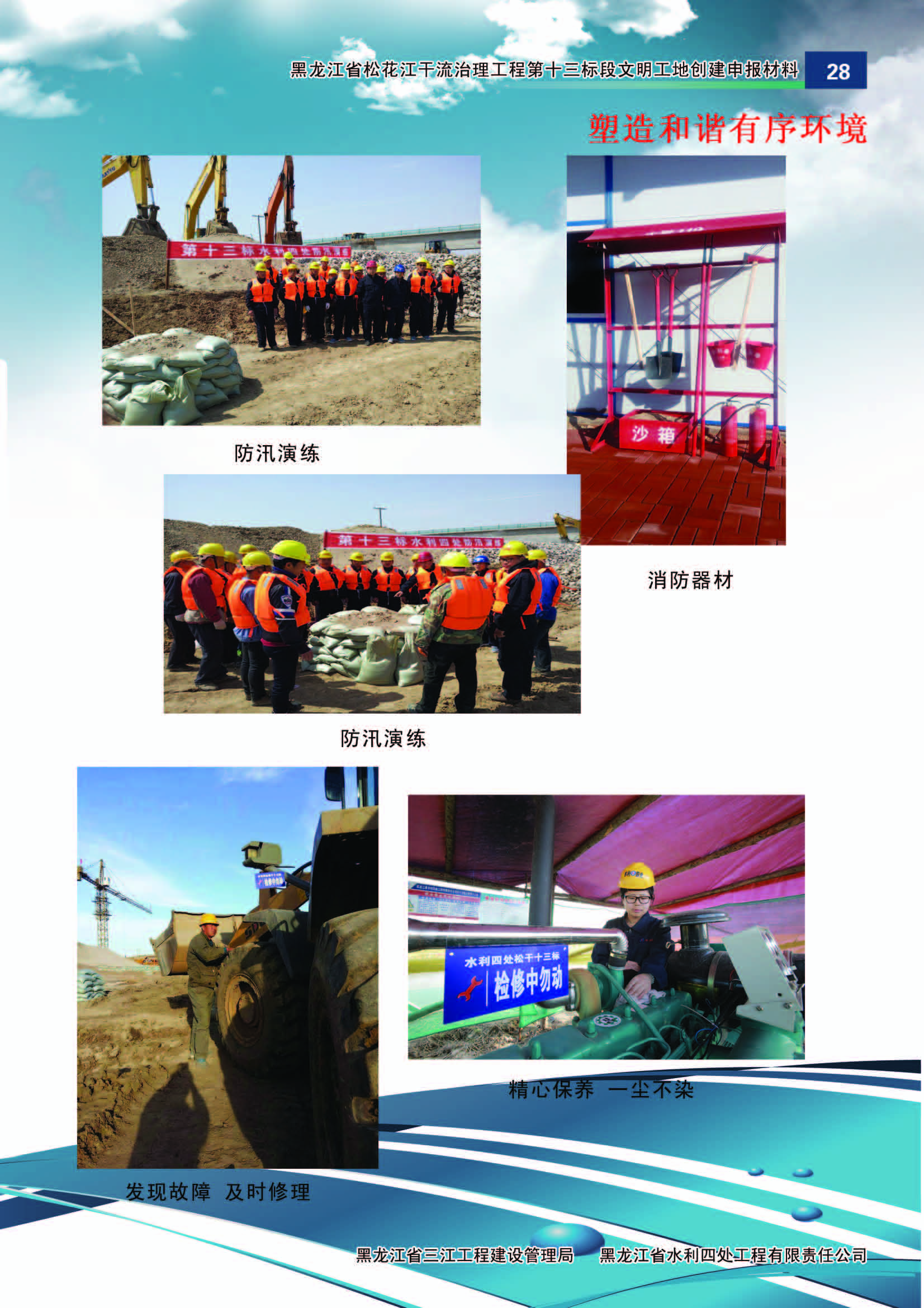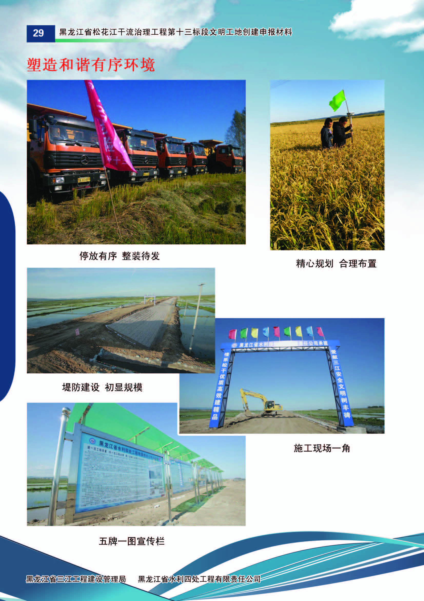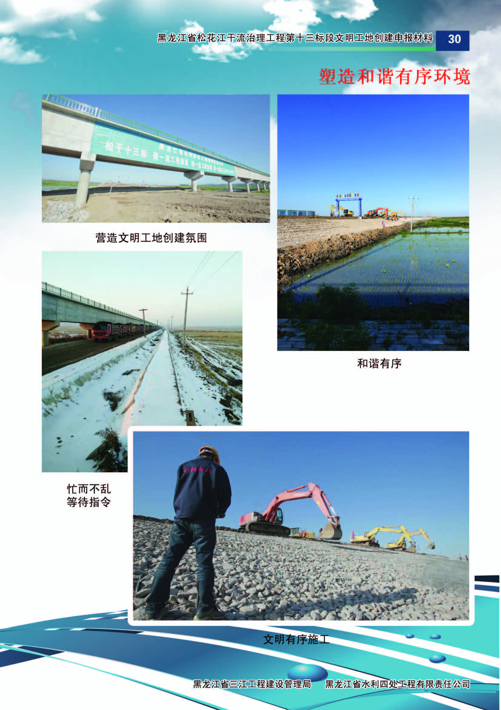 施工中黑龍江省水利四處嚴(yán)格按照水利部《水利建設(shè)工程文明工地創(chuàng)建管理辦法》的要求,積極組織開展文明工地創(chuàng)建活動(dòng)。
