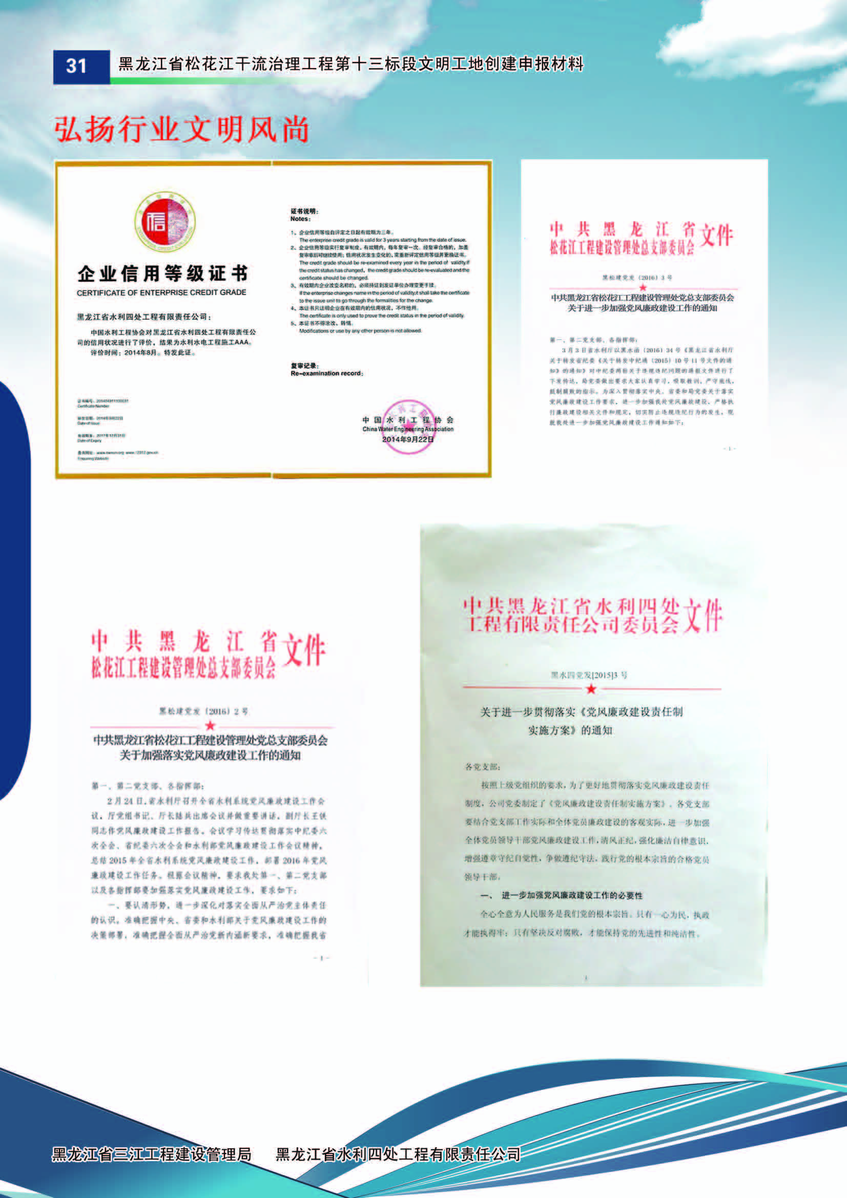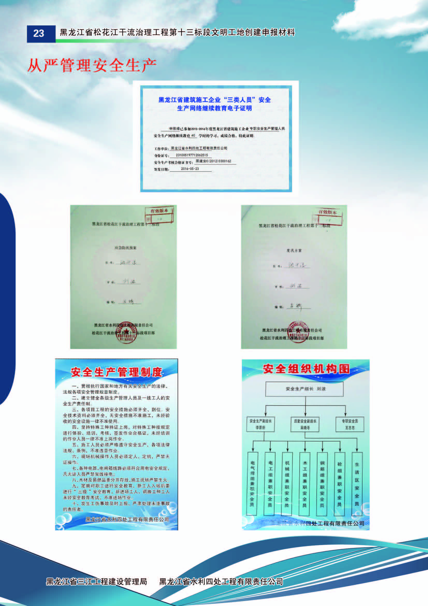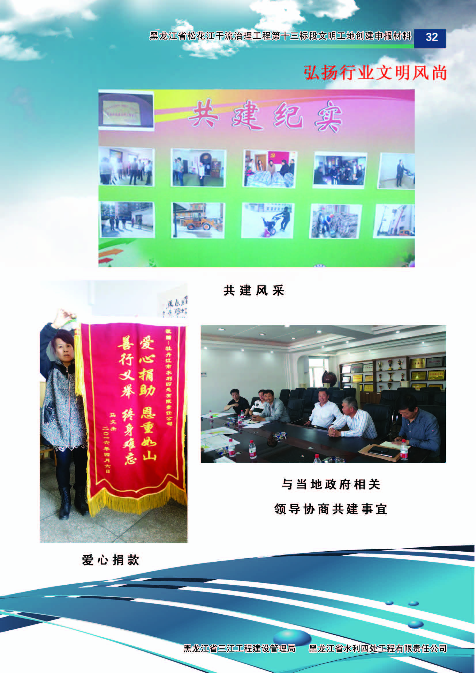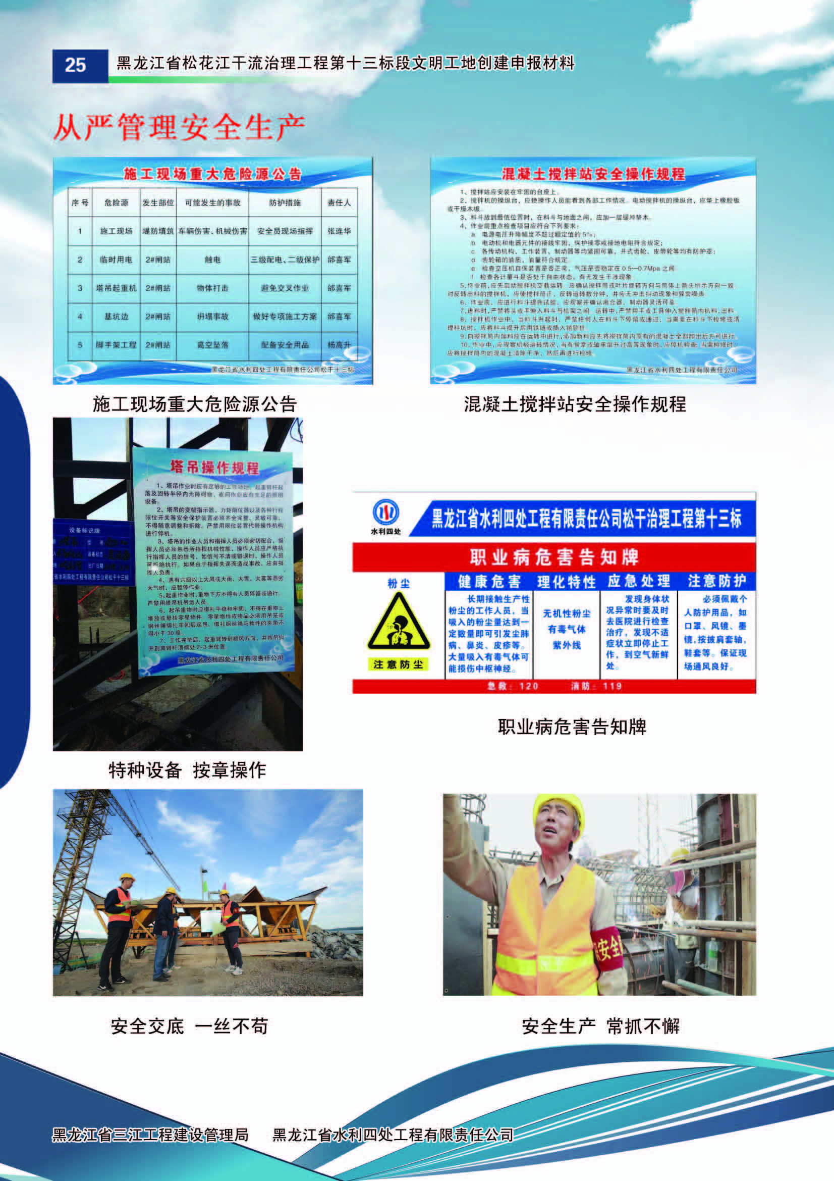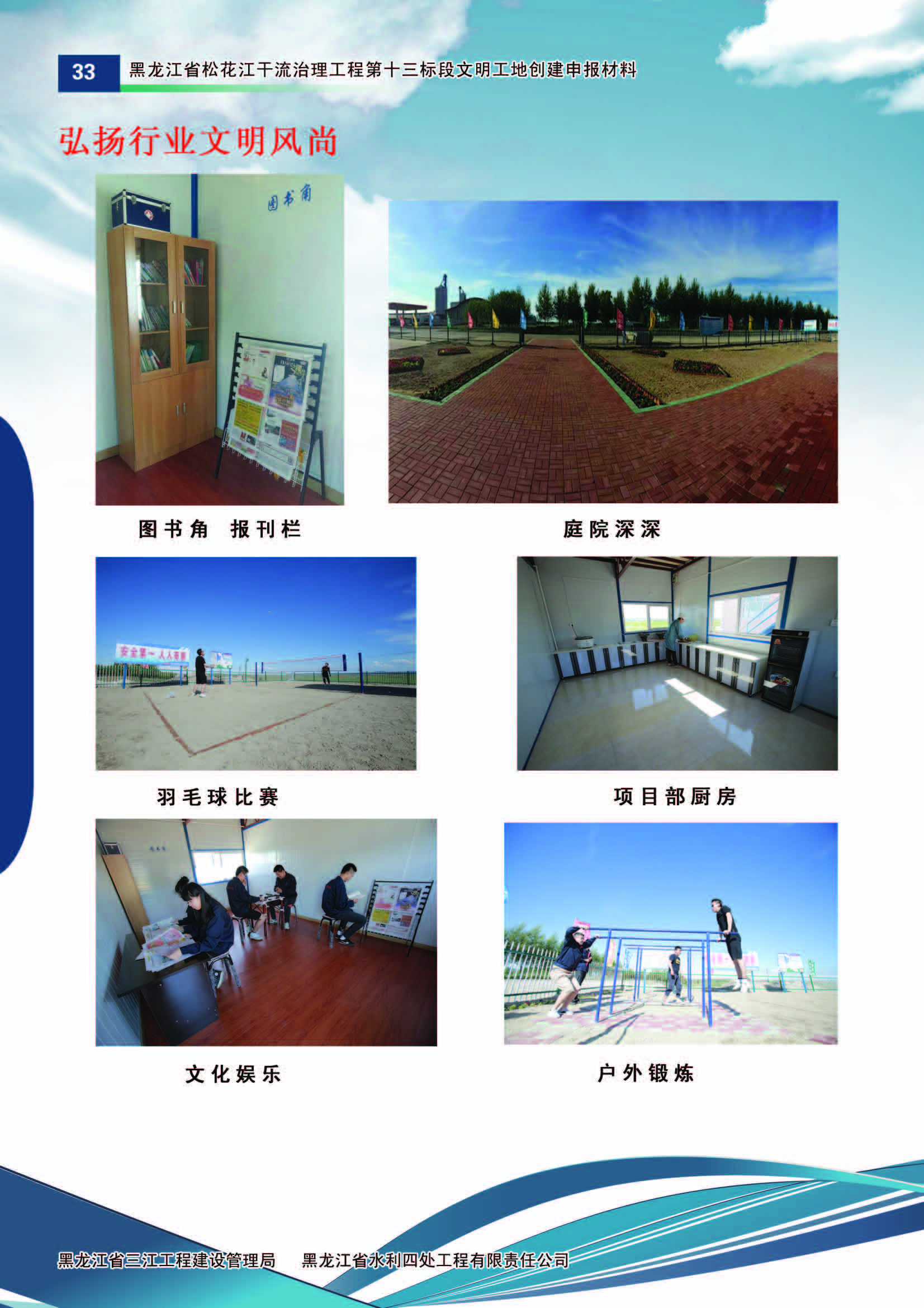 施工中黑龍江省水利四處嚴(yán)格按照水利部《水利建設(shè)工程文明工地創(chuàng)建管理辦法》的要求,積極組織開展文明工地創(chuàng)建活動(dòng)。