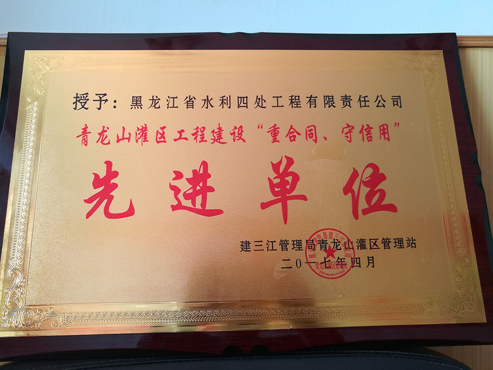 建三江管理局“青龍山灌區(qū)工程建設(shè)”重合同、守信用“先進單位