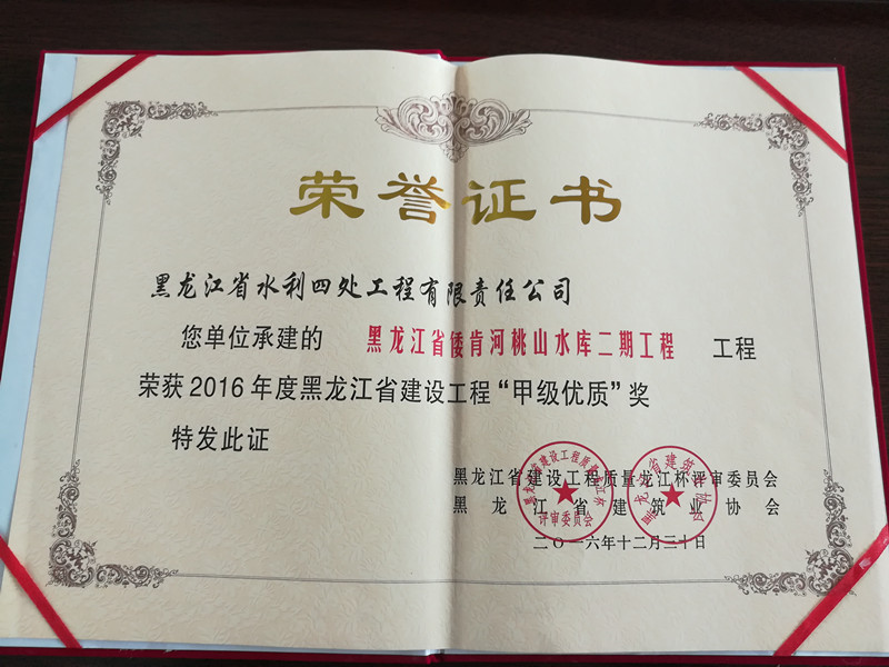 桃山水庫(kù)二期工程榮獲全省甲級(jí)優(yōu)質(zhì)工程