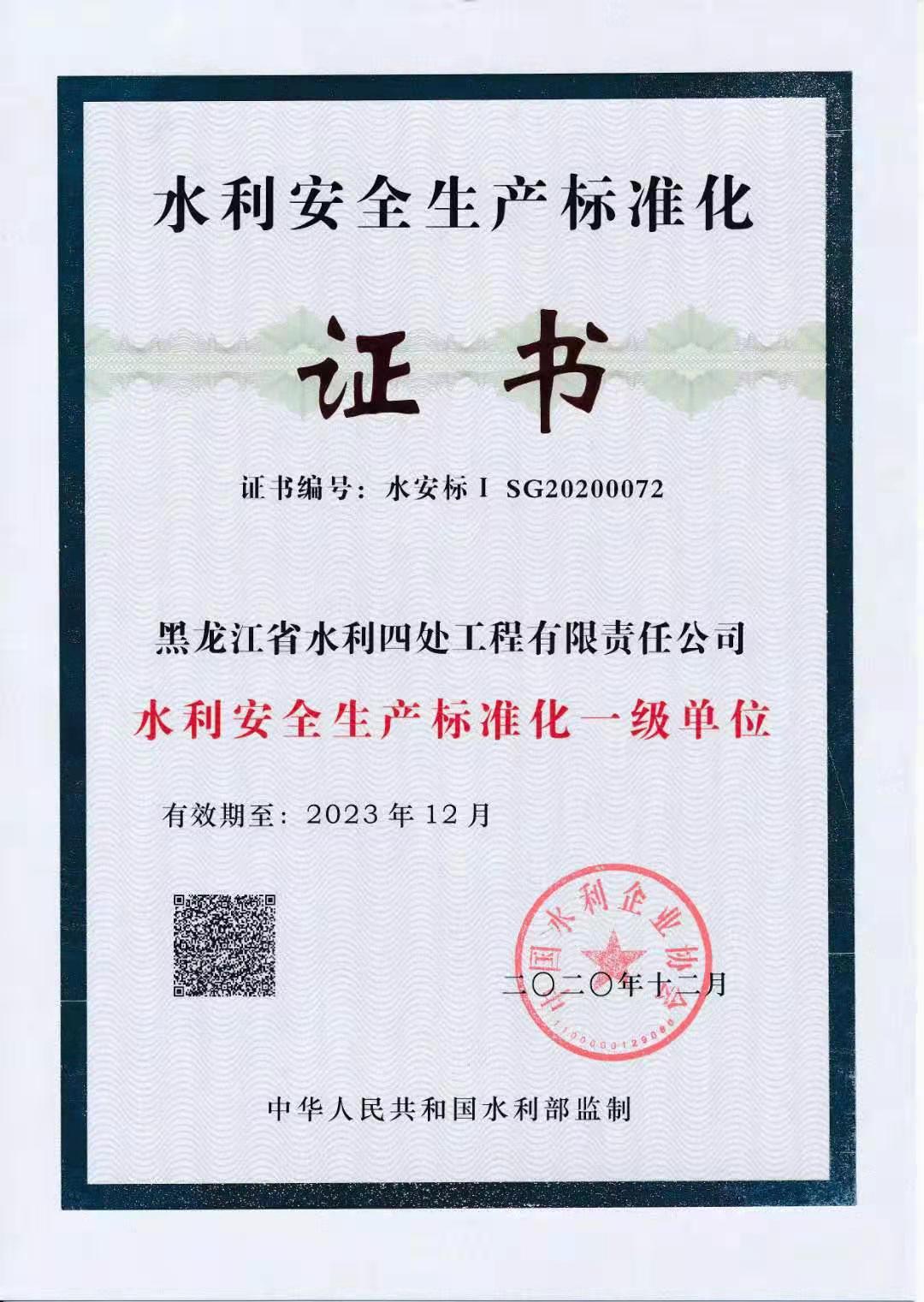 全國水利安全生產(chǎn)標(biāo)準(zhǔn)化一級單位