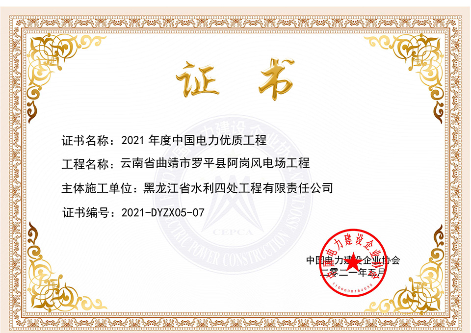 公司榮獲2021年度中國電力優(yōu)質(zhì)工程獎