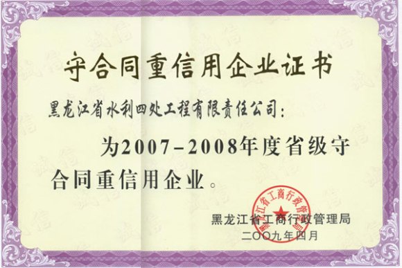 2007-2008省級守合同重信用企業(yè)證書