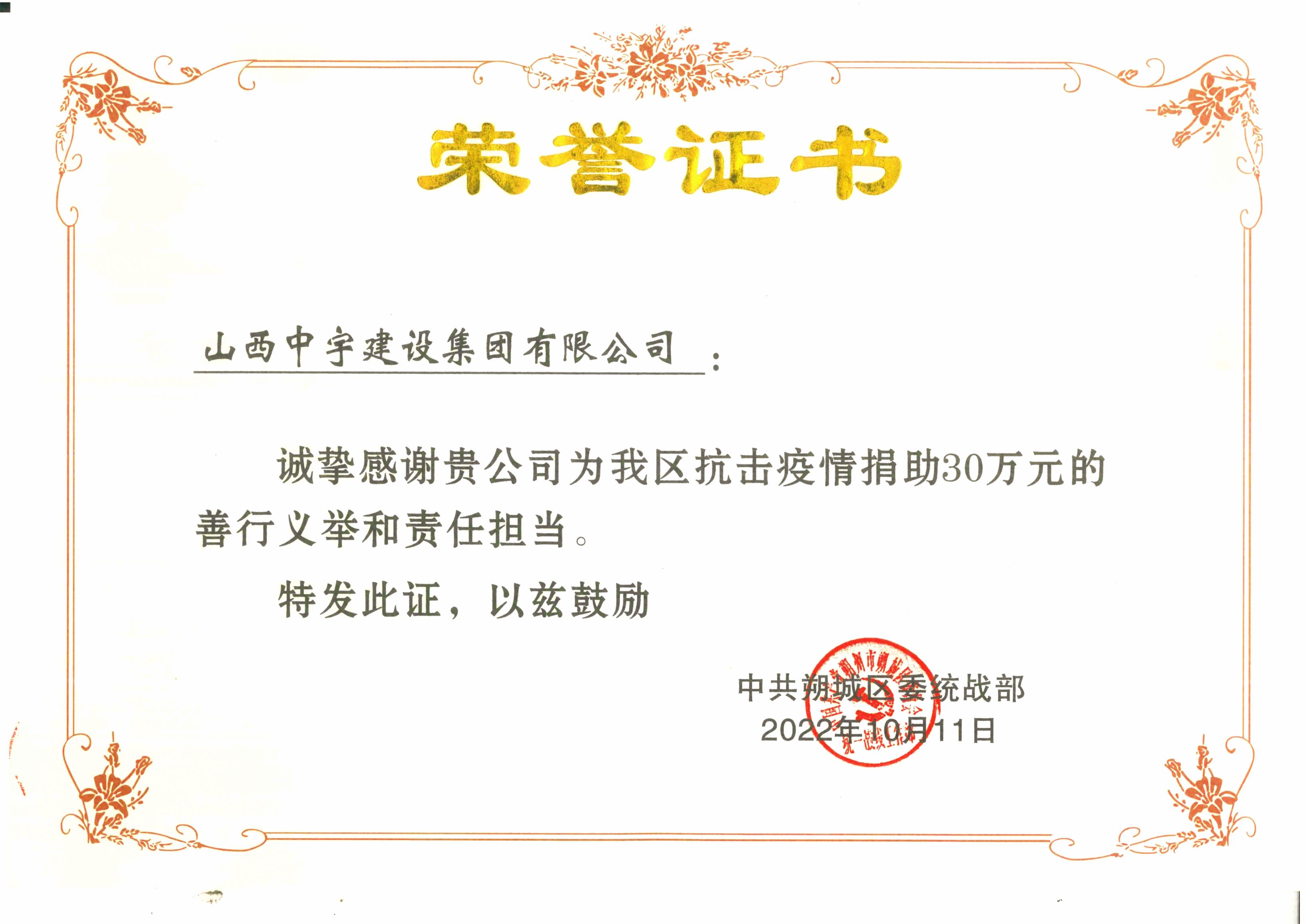 2022年捐助紅十字會(huì)30萬(wàn)元榮譽(yù)證書(shū)