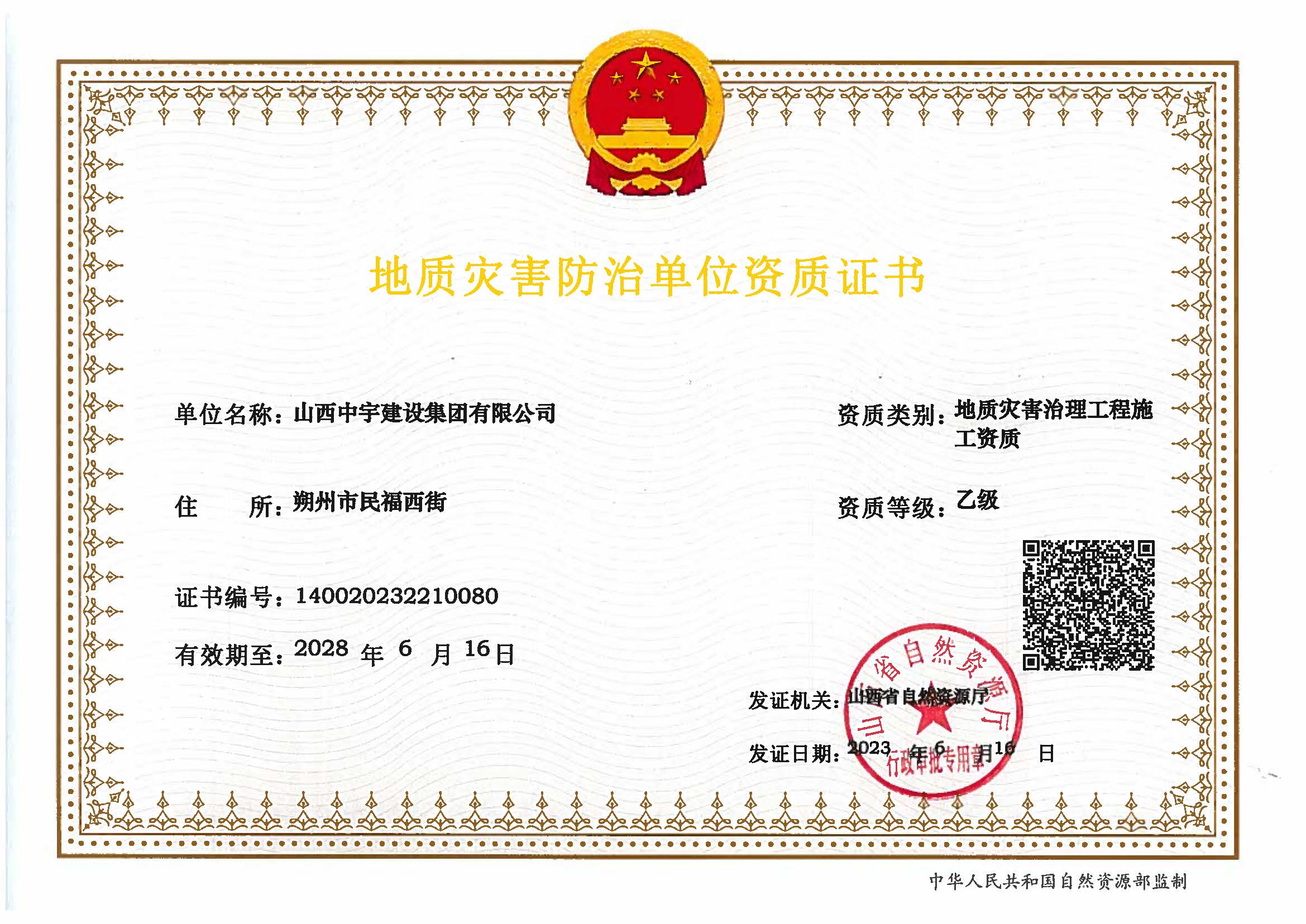 地質(zhì)災(zāi)害治理工程施工乙級(jí)資質(zhì)