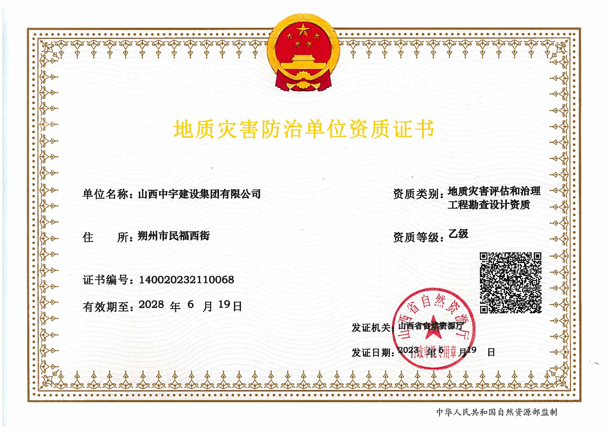 地質(zhì)災(zāi)害評(píng)估和治理工程勘查設(shè)計(jì)乙級(jí)資質(zhì)
